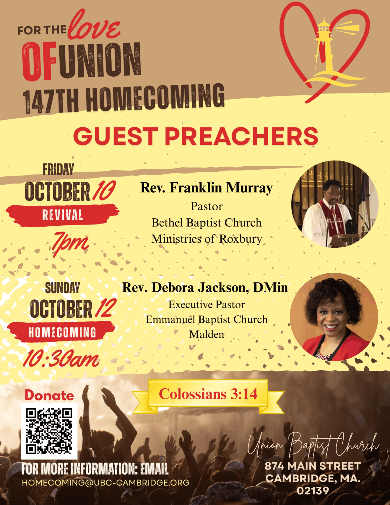 Location: Union Baptist Church, 874 Main St., Cambridge